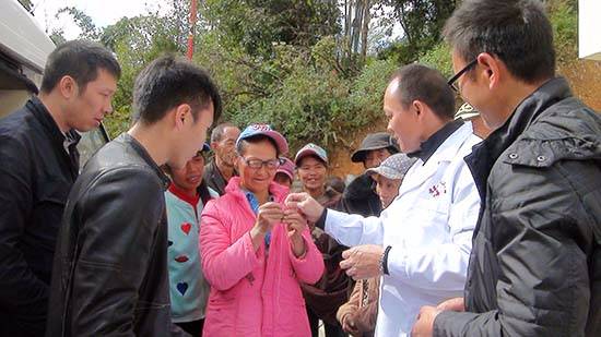“阿姨,你试试戴上这副老花镜能不能穿针,能看清楚字吗?如果不清楚,可以换另外度数的眼镜试试……”,“啊地地,看得清清楚楚了,我现在可以穿针了,以前根本看不见针头别说穿针了……”,镇沅县者东镇麦地村某村...